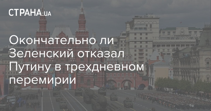 Реакция украинских властей на предложение Путина объявить перемирие с 8 по 10 мая была резко негативной. Что большинство комментаторов трактует как отказ Киева. Тем более что Зеленский несколько раз уже намекнул на возможность удара по параду 9 Мая на Красной площади.