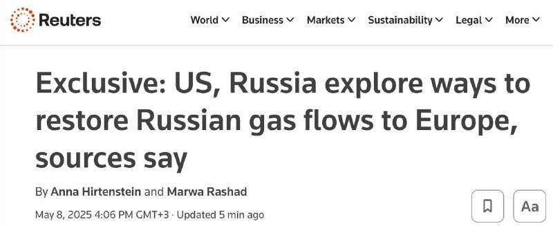США и Россия обсуждают возобновление поставок российского газа в Европу при участии американцев в рамках мирного урегулирования конфликта в Украине.