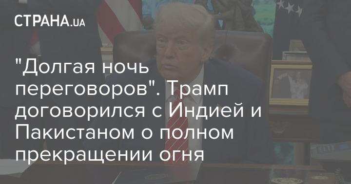 "После долгой ночи переговоров при посредничестве США я рад объявить, что Индия и Пакистан договорились о полном и незамедлительном прекращении огня. Поздравляю обе страны с тем, что проявили здравый смысл и высокий уровень разумности", - написал Трамп.