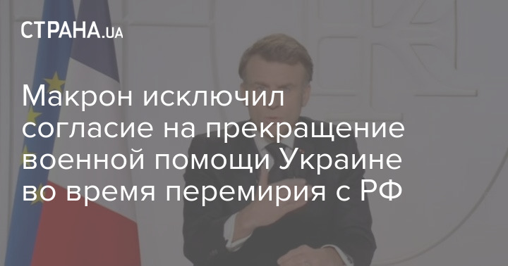 Президент Франции Эмманюэль Макрон исключил своё согласие на прекращение военной помощи Киеву на время возможного 30-дневного прекращения огня по линии фронта.