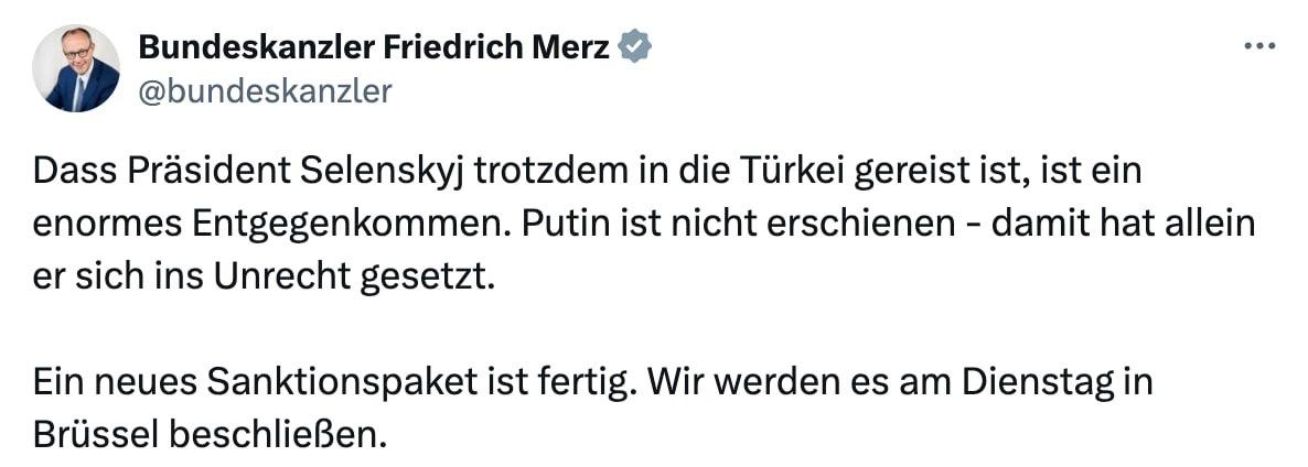 17:58 Европейские лидеры осудили РФ по итогам переговоров с Украиной в Стамбуле. Однако Мерц отметил и "положительный сигнал".