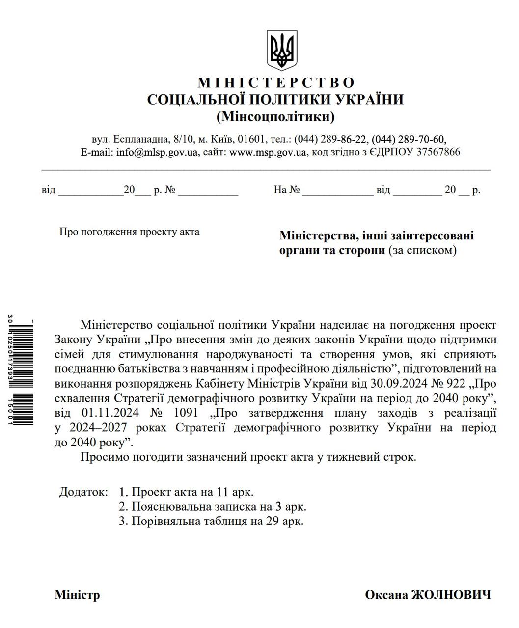 - давать одному из родителей ребенка (либо опекуну, бабушке, дедушке или другому родственнику, который фактически осуществляет уход за ребенком) пособие по уходу в размере, который будет определен Кабинетом министров после принятия проекта акта;