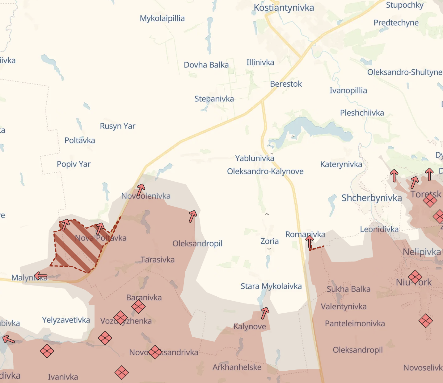 Со стороны Новой Полтавки россияне уже наступают к северу от трассы Покровск - Константиновка, которая, по сути, уже окончательно перерезана.
