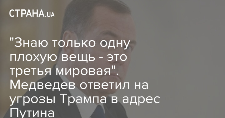 "Знаю только одну плохую вещь - это третья мировая". Медведев ответил на угрозы Трампа в адрес Путина