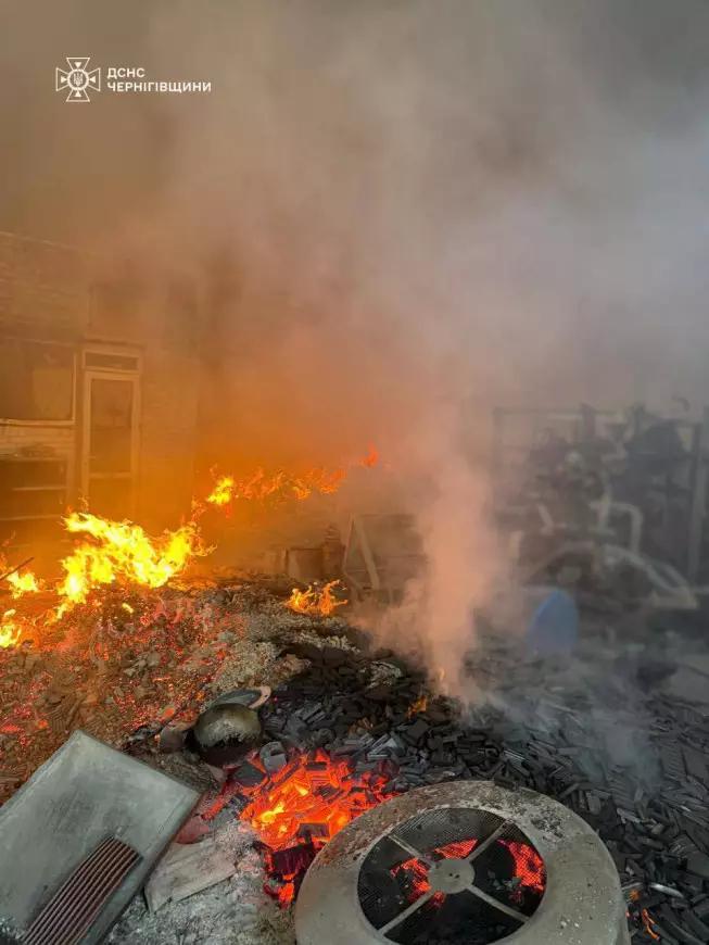 9.23 В Черниговской области утром был прилет по предприятию, возник масштабный пожар, который все еще продолжается, сообщает ГСЧС.