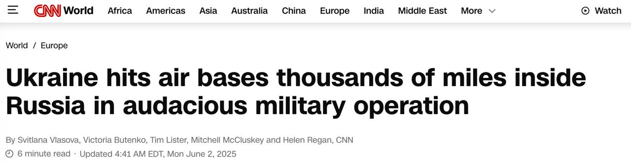 16:03 Украина не информировала заранее США о подготовке операции против российской авиации и министр обороны Хегсет еще не разговаривал с Киевом после этого, сообщает CNN со ссылкой на источник.
