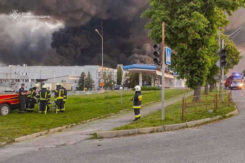 07:44 Кадры тушения пожара после удара по Тернополю.