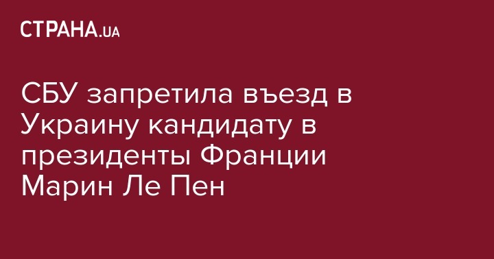 Служба безопасности Украины направила официальное письмо в Министерство иностранных дел с запросом на запрет въезда кандидату в президенты Франции, лидеру партии "Национальный фронт" Марин Ле Пен в Украину. Об этом заявил руководитель аппарата председателя СБУ Александр Ткачук в эфире телеканала "112 Украина".