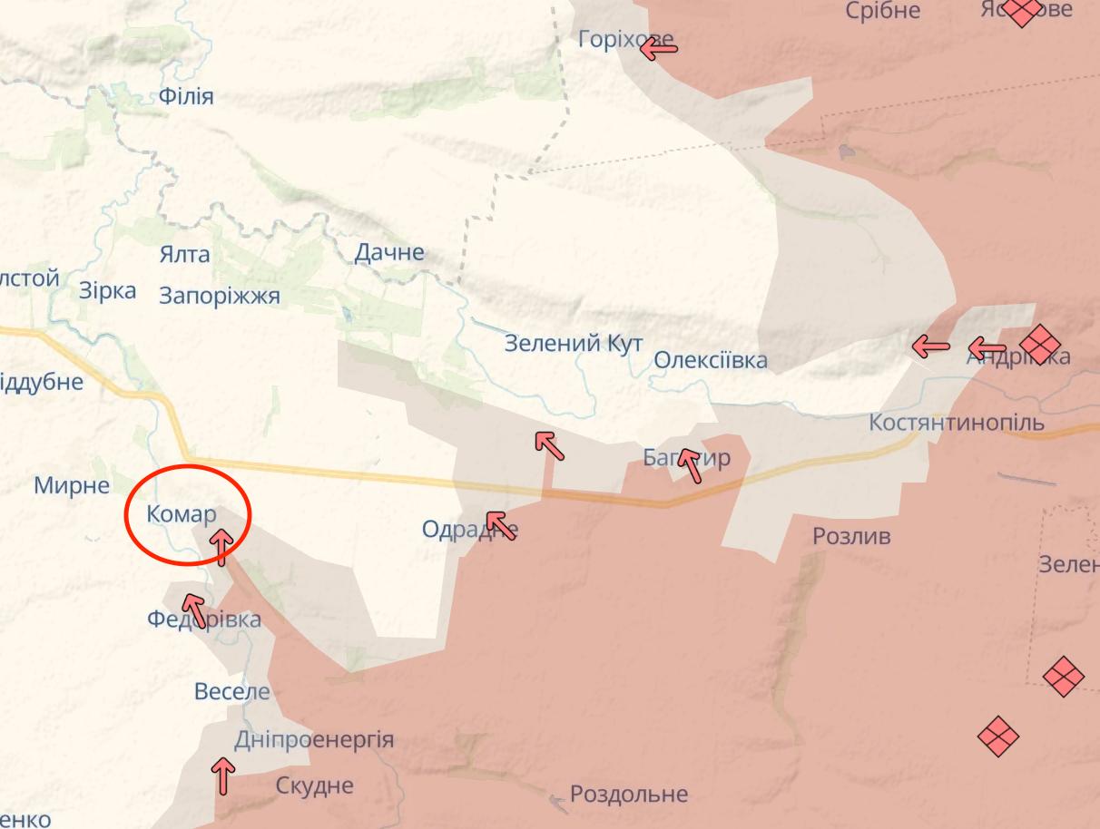 По словам военного, россияне забрали центральную часть Комара, а в северной фиксируется их присутствие.