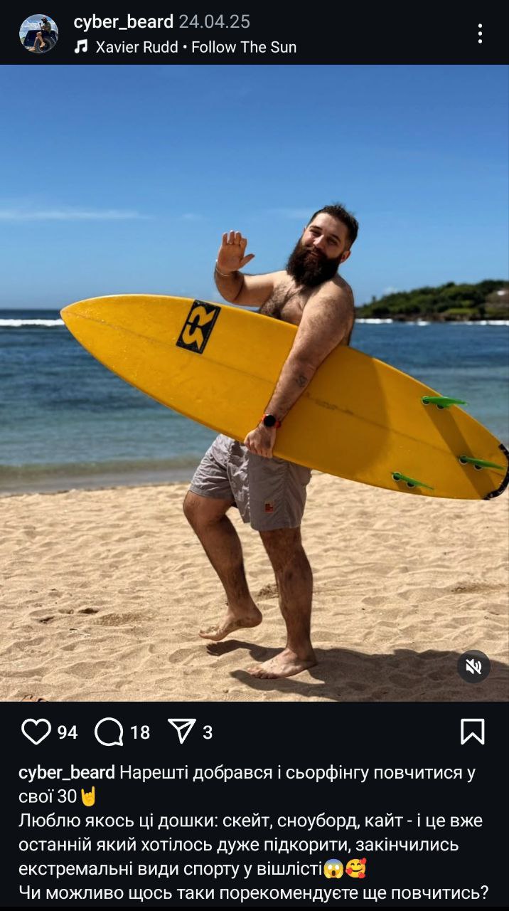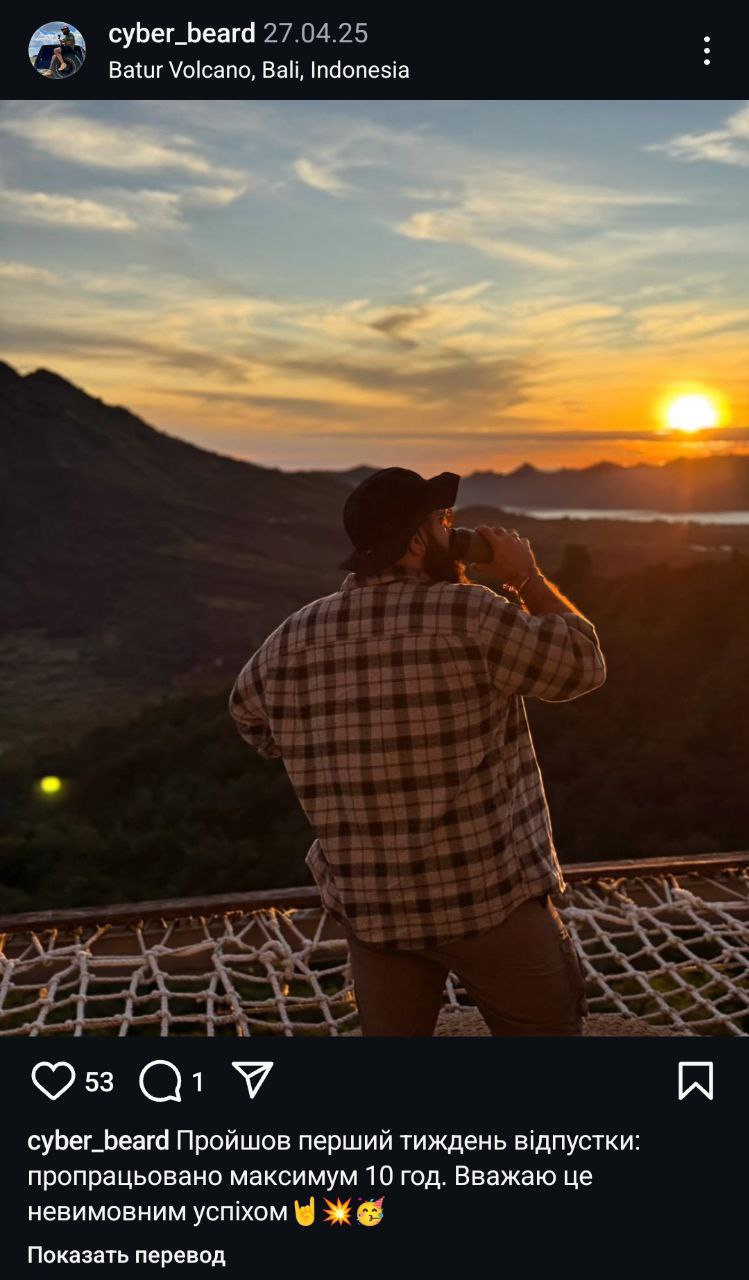 Один из создателей приложений для мобилизации в Украине отдыхает за границей и выкладывает фото об этом в своем Инстаграме.