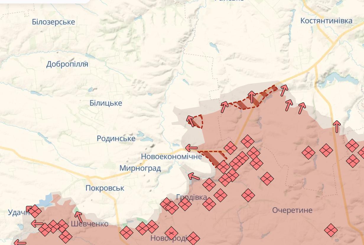 Армия РФ продвинулась на трех участках к востоку от Покровска в Донецкой области и захватила село Шевченко Первое.