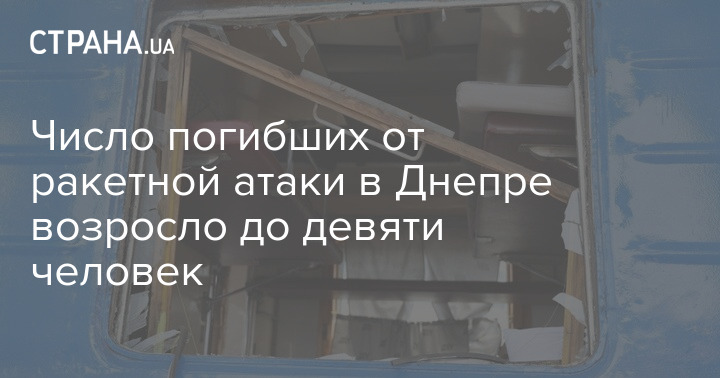 Количество погибших в результате российской атаки на Днепр возросло до девяти человек. Еще двое погибли в населенном пункте Самара.