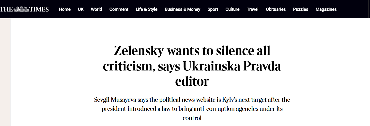 Введение санкций против компаний Фиалы "могло бы привести к принудительному выкупу сайта "Украинская правда" со стороны приближённых к власти в условиях дефицита финансирования", пишет Times.