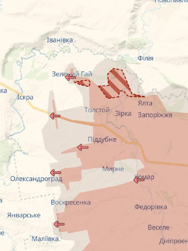 15.15 Армия РФ продвинулась у границы Днепропетровской области в районе Новохатского, серая зона подошла непосредственно к админгранице региона, свидетельствует карта Deep State.
