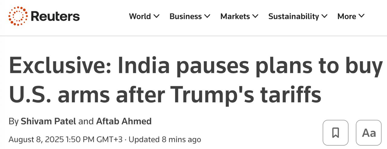 Индия приостанавливает планы по покупке американского оружия и самолетов из-за новых пошлин Трампа - Reuters