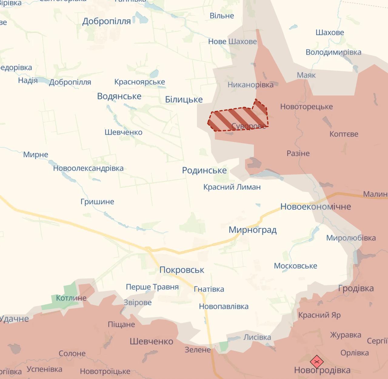Также российские войска продвинулись к северу от Родинского, где захвачено село Затишок.