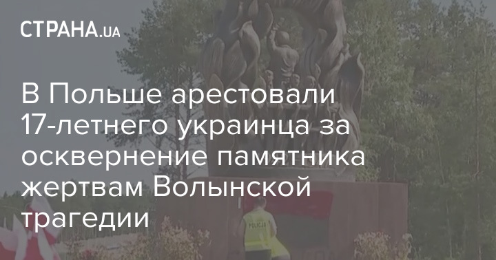 В Польше арестовали 17-летнего украинца, подозреваемого в нанесении надписи "Слава УПА" и красно-черного флага на памятник жертвам Волынской трагедии.