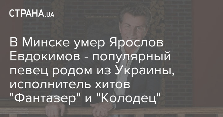 В Минске умер Ярослов Евдокимов - популярный певец родом из Украины, исполнитель хитов "Фантазер" и "Колодец"
