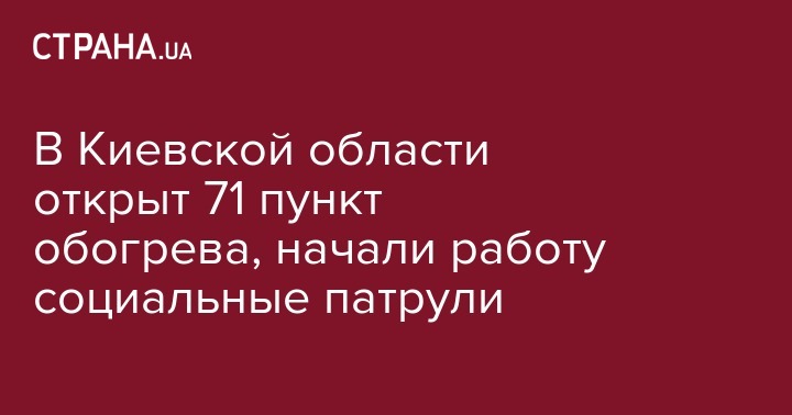 Во всех районах Киевской области уже открыт 71 оборудованный пункт обогрева. Часть из них функционируют в круглосуточном режиме. Стационарные точки обогрева развернуты в связи с ухудшением погодных условий. Адреса всех оборудованных пунктов обогрева опубликованы на сайте ГосЧС Украины.