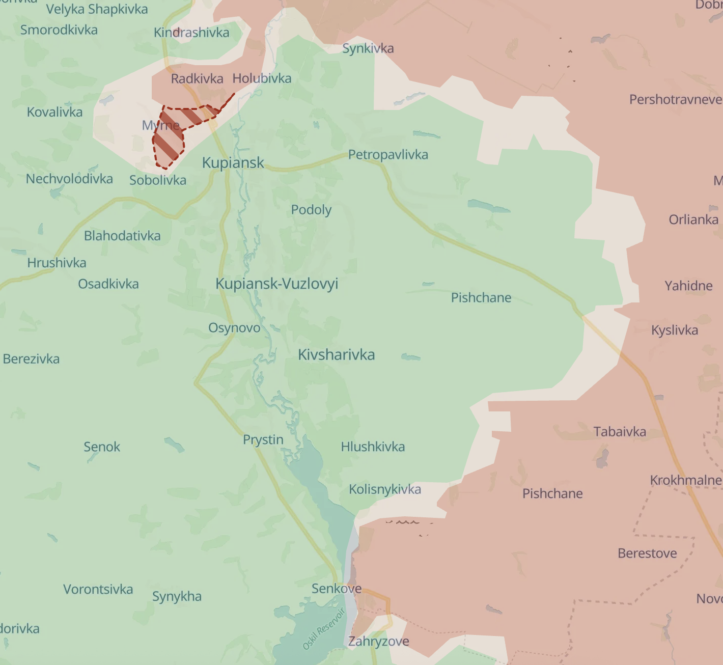 При этом армия РФ существенно продвинулась к западу от Купянска, сообщает Deep State. Таким образом россияне подошли на два километра к основной трассе снабжения города - из Харькова.