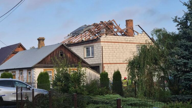 Пока неизвестно, какие ещё модификации принимали участие в налёте и были ли среди них ударные дроны. По крайней мере, следов от мощных взрывов, вызванных детонацией боевой части БпЛА типа "Герань", пока никто не показал. Опубликовано лишь фото дома с разрушенной крышей, что больше похоже на последствия падения обломков от сбитого аппарата или поразившей его ракеты.