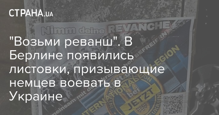 Листовки зовут немцев присоединиться к интернациональному легиону, воюющему в рядах ВСУ. На них написан лозунг "Возьми реванш". Рядом с ним помещена архивная чёрно-белая фотография немецких военнопленных времен Второй мировой войны.