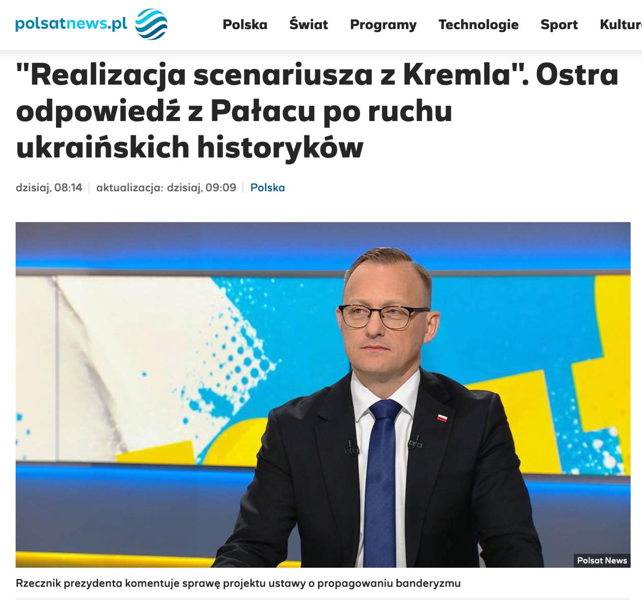 Спикер президента Польши Рафал Лешкевич в ответ заявил, что обращение украинских историков – это "реализация сценария, написанного в Кремле".