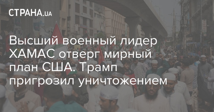 Высший военный лидер ХАМАС отверг мирный план США. Трамп пригрозил уничтожением
