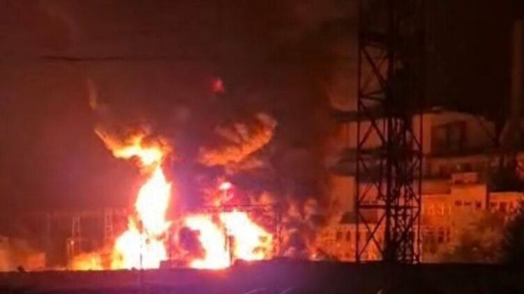 В городе Краматорске сильный пожар после обстрела теплоэлектростанции.