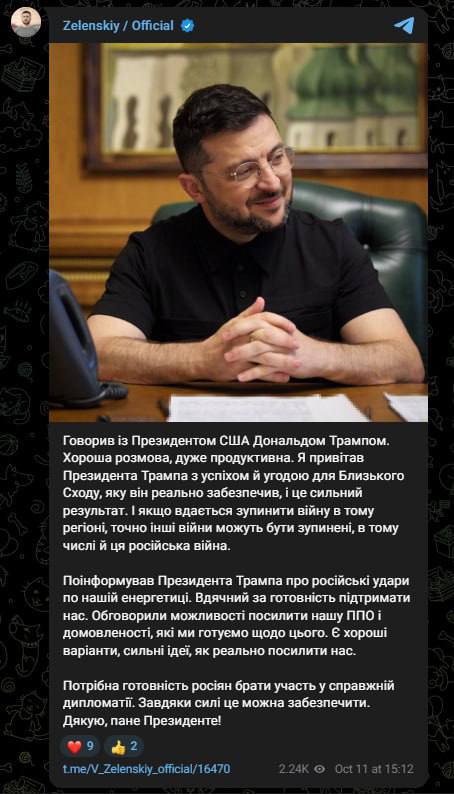 15:20 Зеленский сейчас говорит с Трампом, пишет Ермак.