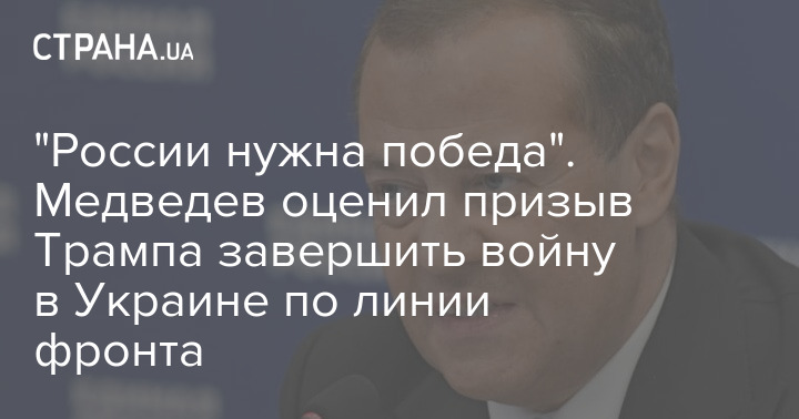 Заместитель председателя Совета безопасности РФ Дмитрий Медведев, комментируя призыв президента США Дональда Трампа к завершению войны по линии фронта, заявил, что России в Украине "нужна победа со всем известными условиями".