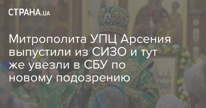 Настоятеля Святогорской Лавры Украинской православной церкви митрополита Арсения выпустили из СИЗО решением суда под залог, но тут же увезли в СБУ по новому подозрению.