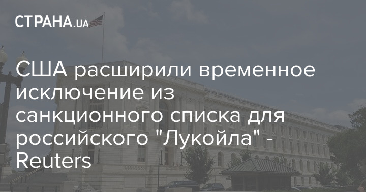 США расширили временное исключение из санкционного списка для зарубежных подразделений российской нефтяной компании "Лукойл".