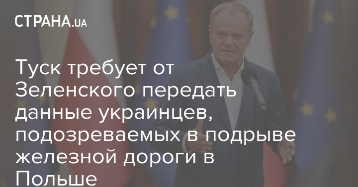 Премьер-министр Польши Дональд Туск потребовал от президента Украины Владимира Зеленского немедленно предоставить данные граждан Украины, подозреваемых во взрыве на железной дороге в Польше.