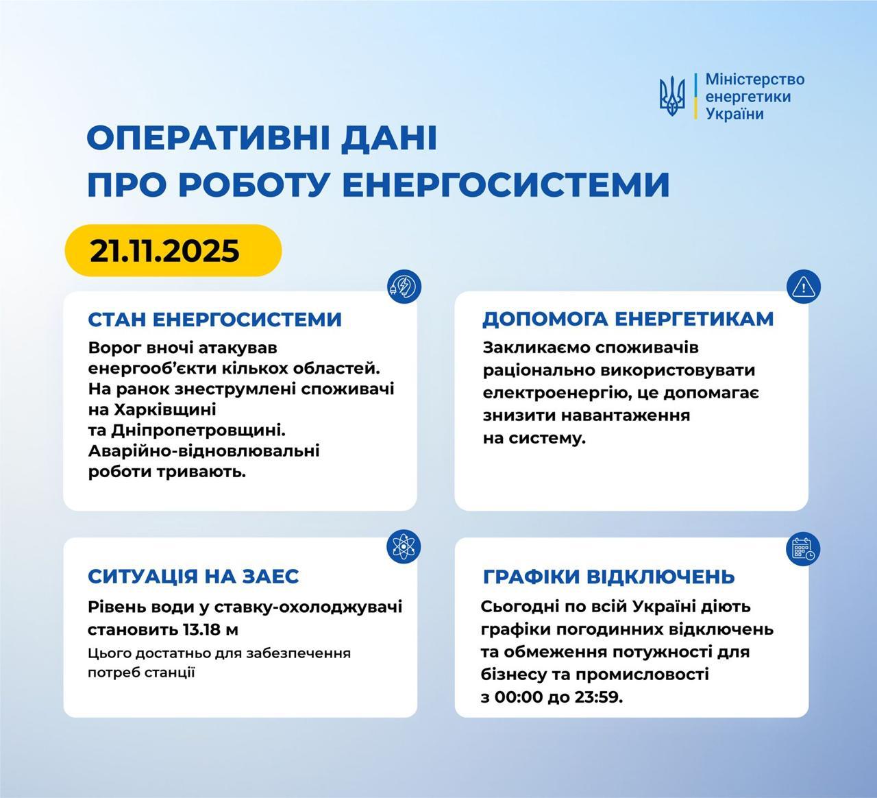 10:34 О прилетах по энергетике в нескольких областях сообщает Минэнерго. В результате на утро обесточены потребители в Харьковской и Днепропетровской областях.