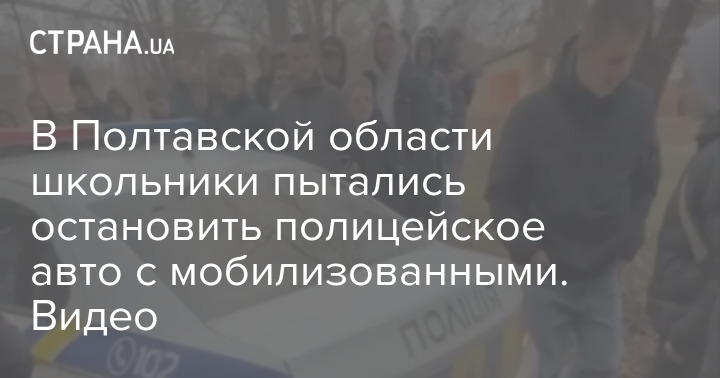 В Полтавской области школьники пытались заблокировать движение полицейского автомобиля, который увозил мобилизованных.