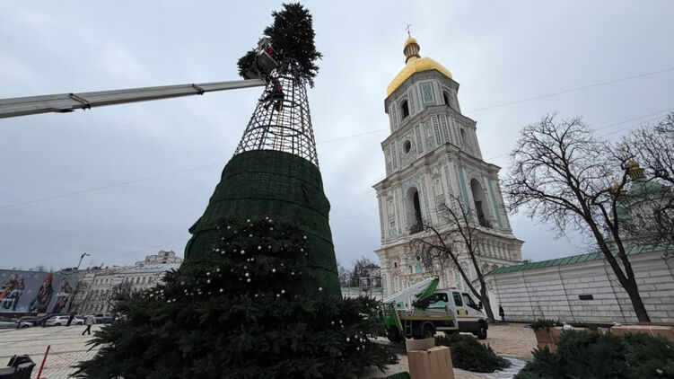 В Киеве начали устанавливать главную новогоднюю елку страны. Она будет находится на Софийской площади.