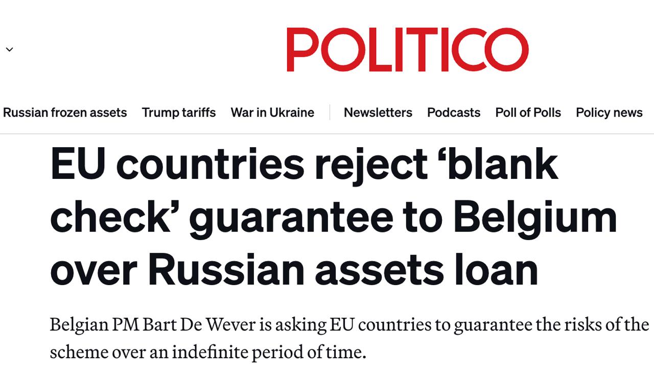 По информации издания, Брюссель хотел получить такую гарантию на случай, если РФ подаст на него в суд. Премьер Бельгии Барт де Вевер настаивает, чтобы правительства ЕС предоставили стране финансовые гарантии, превышающие 140 миллиардов евро, которые можно было бы выплатить в течение нескольких дней. Он также хочет, чтобы срок действия этих гарантий превышал срок действия санкций ЕС против России.