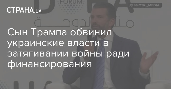 Дональд Трамп-младший, сын президента США Дональда Трампа, вновь раскритиковал украинские власти, отметив, что они посылают на фронт бедных и продолжают войну пока им дают финансирование.