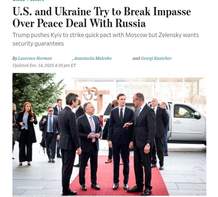 7.42 Зеленский на переговорах с Уиткоффом в Берлине предложил отказаться от стремления Украины в НАТО.