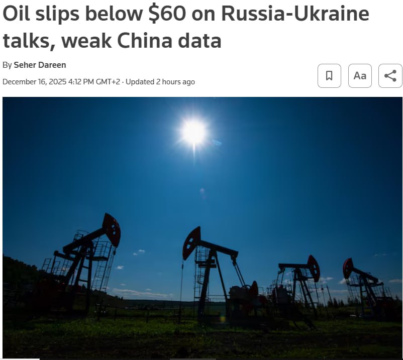 "Сегодня утром цена на нефть марки Brent впервые за несколько месяцев опустилась ниже 60 долларов за баррель, поскольку рынок оценивает возможность заключения мирного соглашения, в результате которого станут доступны дополнительные объемы российской нефти, что приведет к дальнейшему переизбытку предложения на рынке", – заявил аналитик Rystad Джанив Шах.