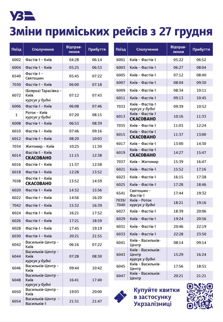 "Укрзализныця" из-за атаки РФ на Киевскую область внесла изменения в ряд пригородных рейсов.