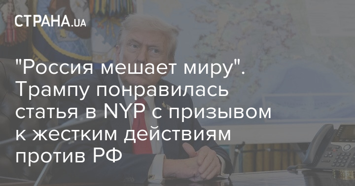 Президент США Дональд Трамп разместил у себя в соцсети Truth Social публикацию из американской газеты, призывающей к жёстким действиям в отношении РФ.