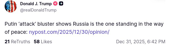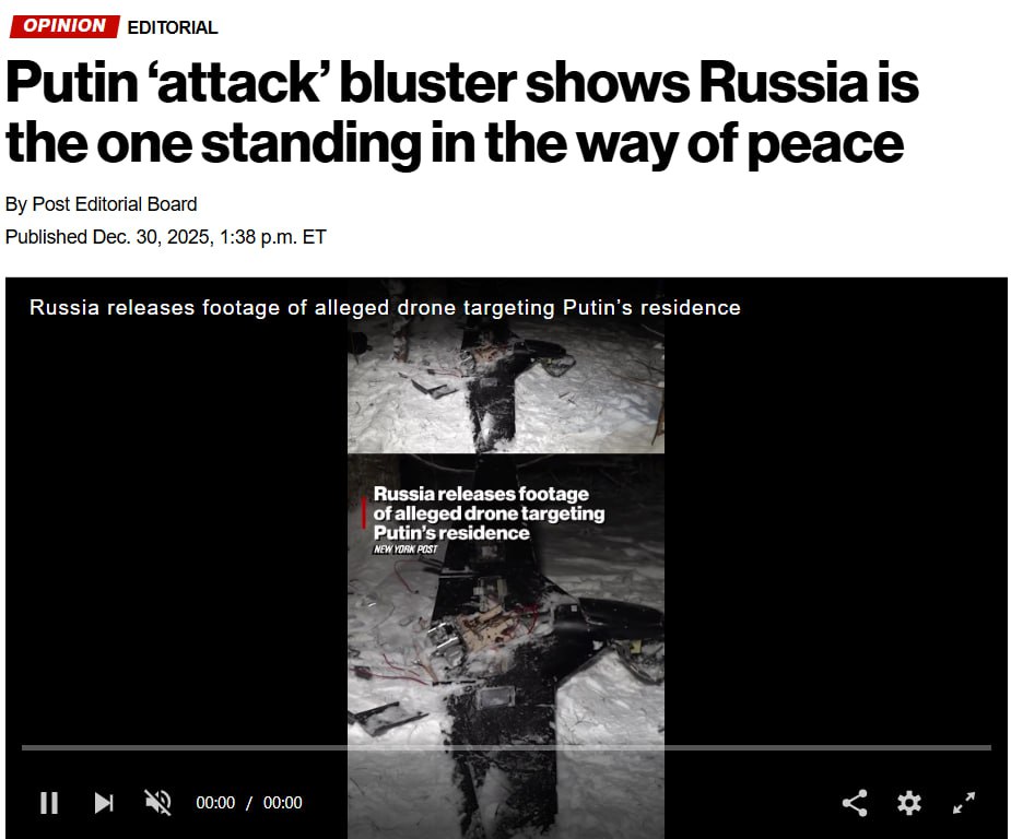 Кроме того, New York Post призывает к решительным мерам в отношении России после заявления Кремля об изменении позиции по переговорам в свете "удара по резиденции".