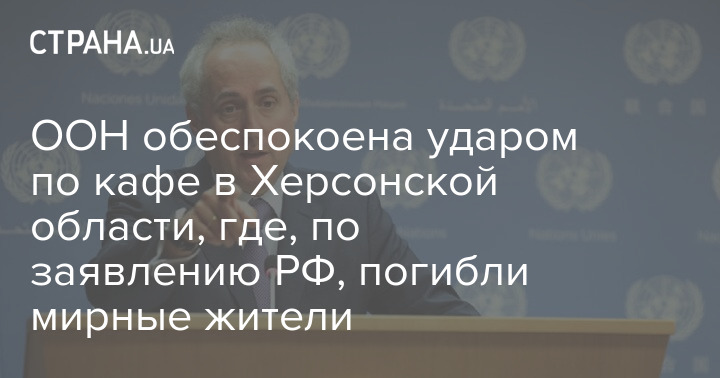 Генеральный секретарь Организации Объединённых Наций Антониу Гутерриш выразил обеспокоенность ударом по кафе в Херсонской области, где, как заявляет РФ, обвиняя в ударе Украину, погибли 27 человек.