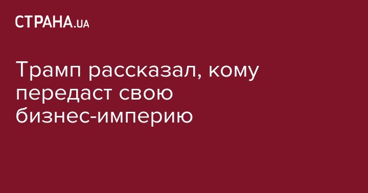 Избранный президент Дональд Трамп сообщил, что передаст свою бизнес-империю в управление двум своим сыновьям - Дональду-младшему и Эрику.