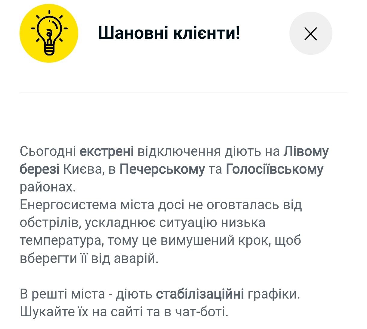 Кроме того, экстренные отключения света сейчас действуют на левом берегу Киева, а также в Печерском и Голосеевском районах на правом берегу.