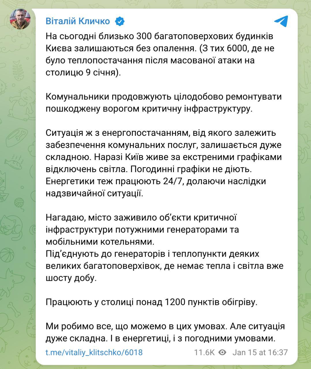 16:48 В Киеве около 300 многоэтажек остаются без отопления, сообщил мэр Кличко.