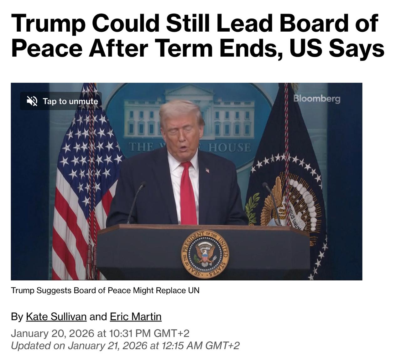 По информации издания, кресло председателя нового органа будет принадлежать Трампу до тех пор, пока он не уйдет в отставку из Совета мира, а будущий президент США может назначить или определить официального представителя Вашингтона в совете.