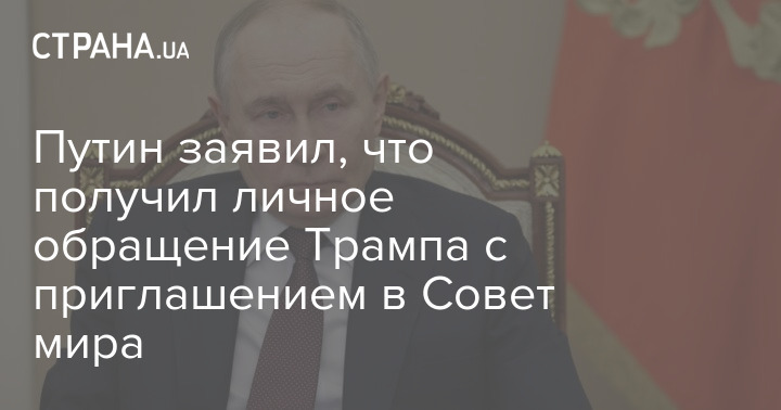 Президент России Владимир Путин заявил, что получил личное обращение от американского коллеги Дональда Трампа с приглашением в Совет мира и поблагодарил за него президента США. Однако пока согласия на него не дал.